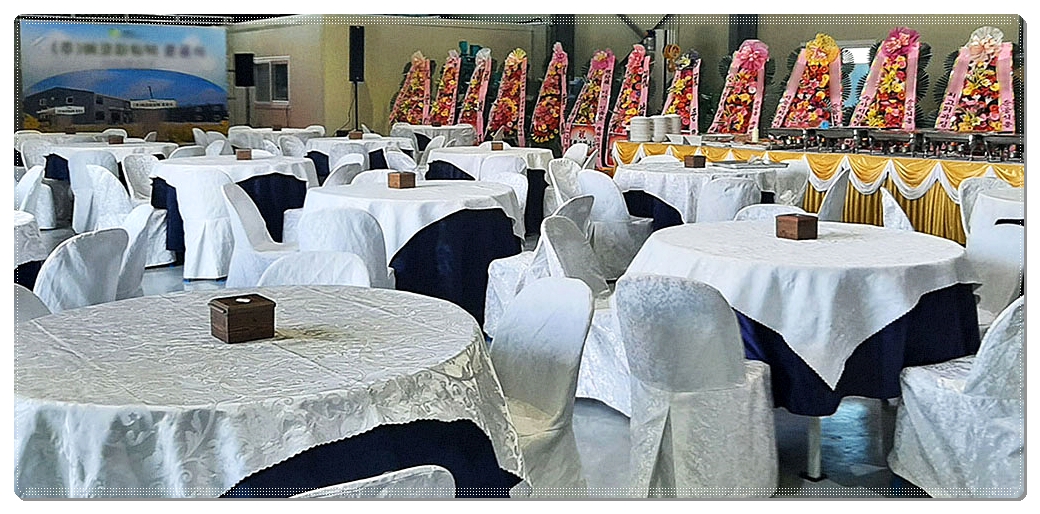 넓은 행사장에 테이블과 의자를 보기 좋게 배치하고,